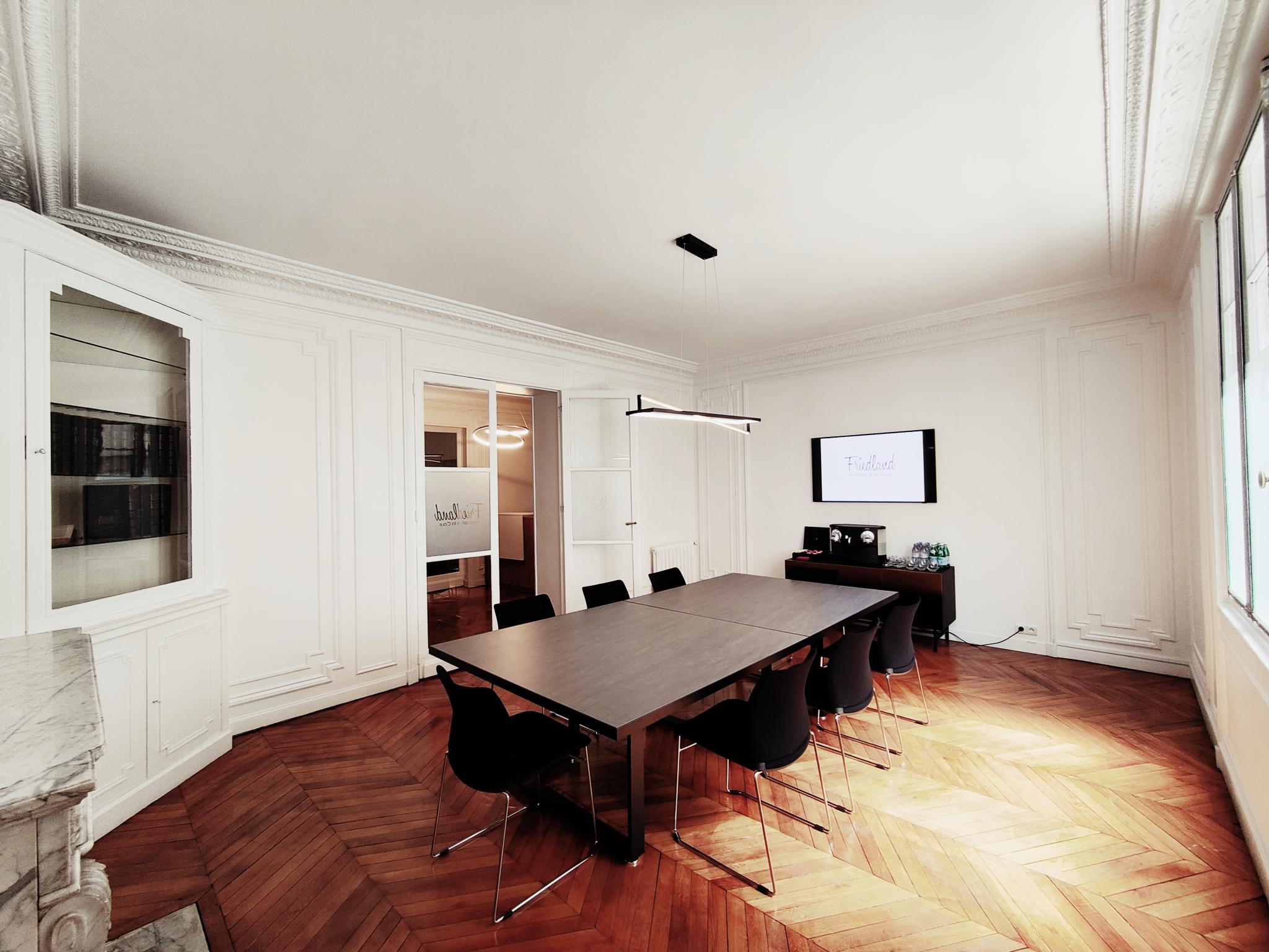- Accès à une grande salle de réunion de 28 m² avec du mobilier neuf et standing à raison de 5 heures par semaine (selon agenda partagé)