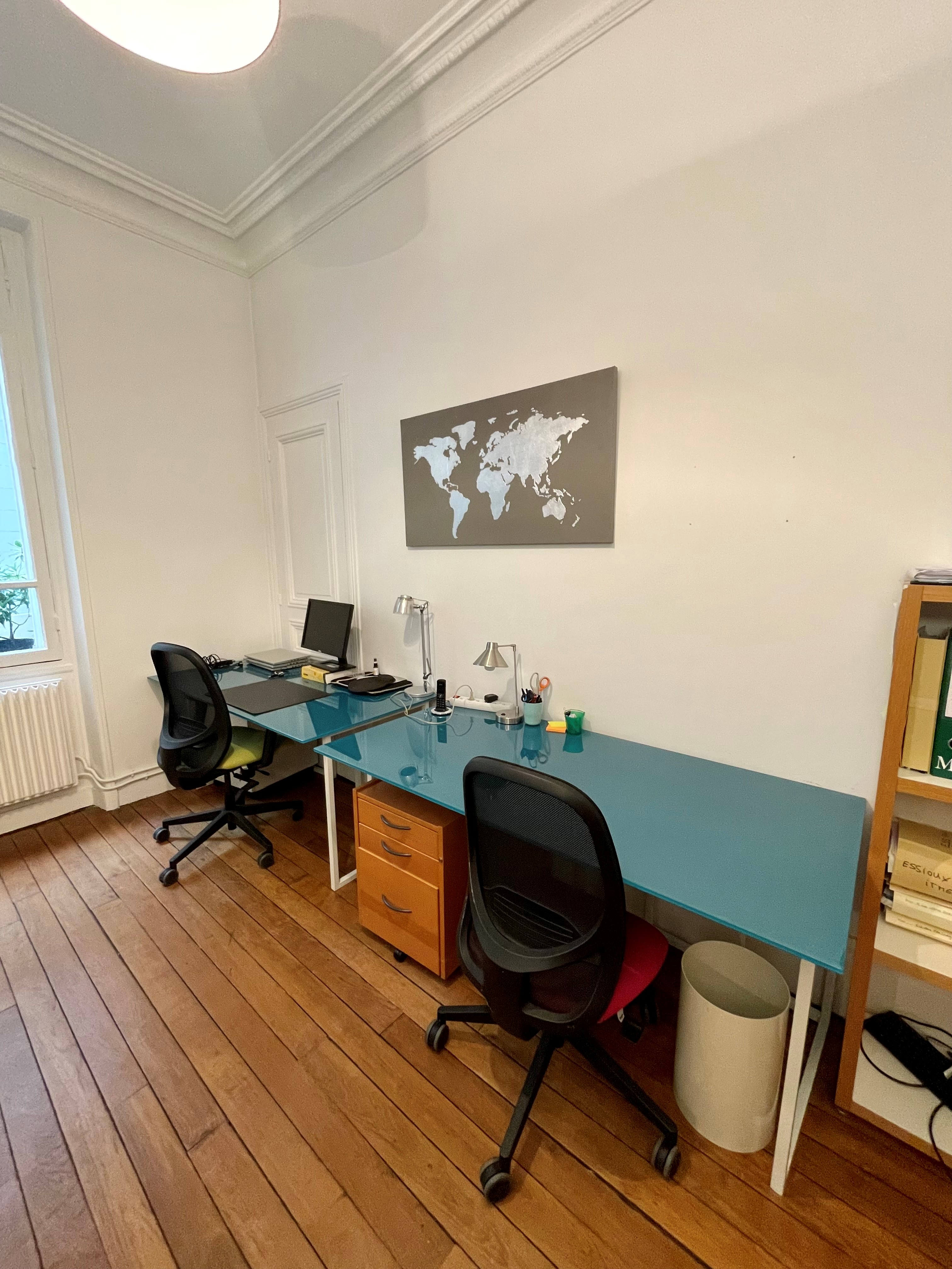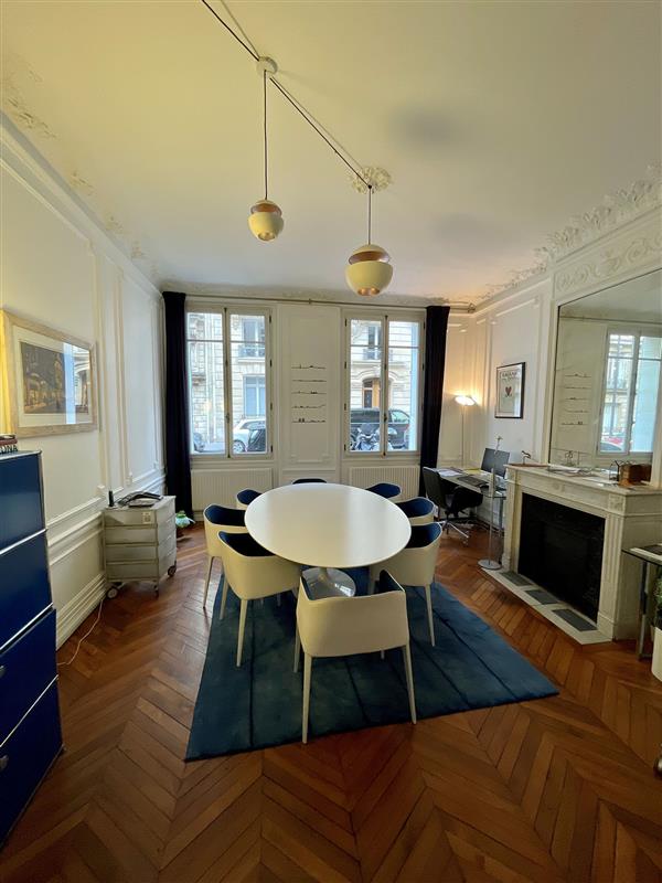 Location d’un bureau rue Margueritte (17e) dans des locaux de 100 m2 (parquet, moulure, cheminées), au rez-de-chaussée d’un immeuble haussmannien en pierre taille.